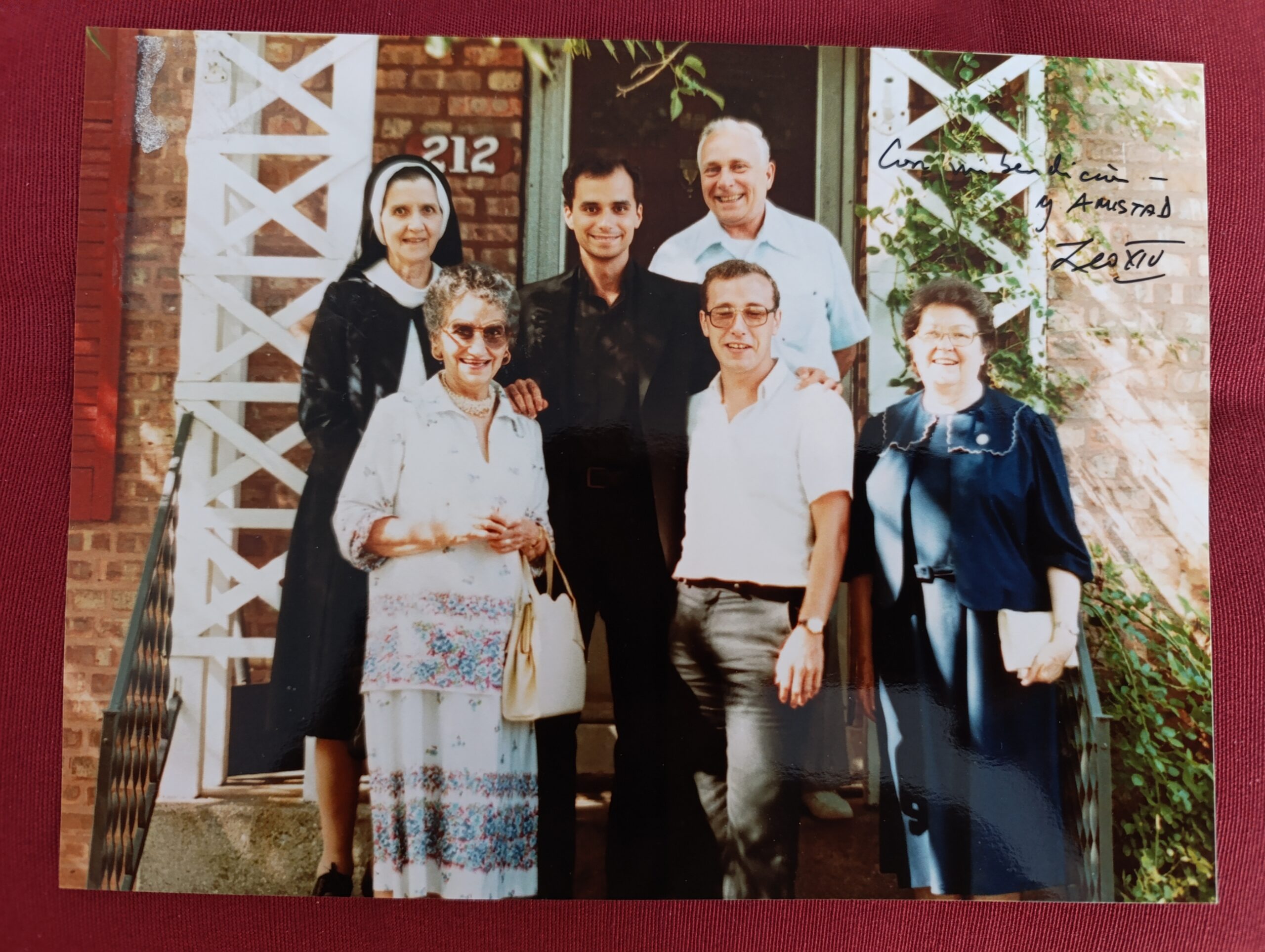 Al P. Isaac González le firmó la Biografía y una copia de la fotografía de 1983 con estas s palabras: «Con mi bendición y AMISTAD. León XIV».