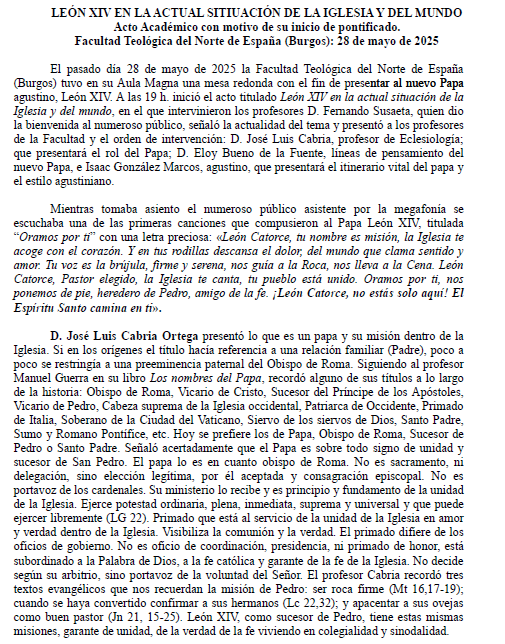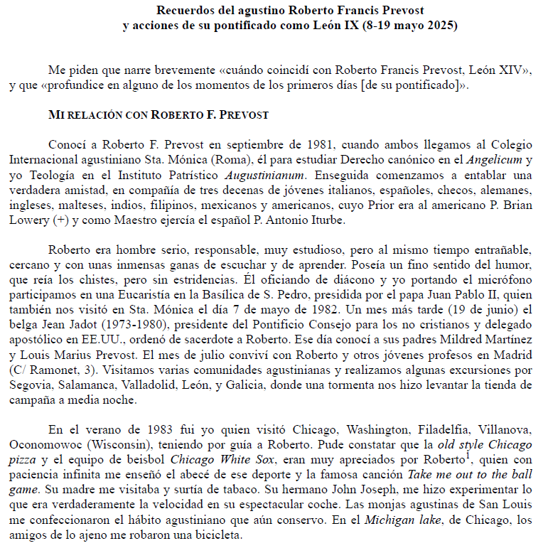 Recuerdos del agustino Roberto Francis Prevost y acciones de su pontificado como León XIV (8-15 mayo 2025)